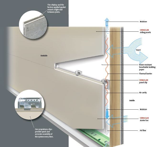 • CERACLAD Rainscreen allows moisture to escape from within walls